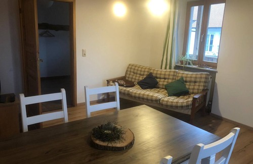 This very comfortably furnished apartment is located in Eggersdorf, on an idyllic old farm, in a secluded location and is lovingly renovated. Here at this unique place, completely secluded from the world, where you can enjoy unforgettable moments. A place that touches our hearts and senses. A place where everyday life stays outside and where we feel: Yes. This is life. Welcome to the Floßmann Hof. Nestled in the hills of Lower Bavaria, the raft man yard for individual relaxation. The reservoir Ilztal is within walking distance. Despite the very quiet location, the farm is close to town - Passau is only a few kilometers. For relaxation, our rustic wood sauna, which can be used for a fee. With the fully equipped kitchen and the numerous regional and organic shopping facilities in the immediate vicinity, they are well supplied and get a sense of country life.