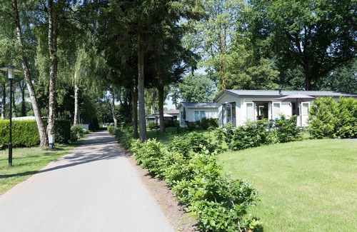 This nice, detached, single-storey chalet is located at Recreatiepark De Wielerbaan, 3.5 km away from the centre of Wageningen. The well-maintained and comfortably furnished chalet is fully equipped. There is a living room with TV and the open plan kitchen features a microwave. There are two bedrooms, each with two single beds, which may or may not be setup as a double bed. In some chalets, there is a single high sleeper and a single bed instead of two single beds. In the bathroom, you will find a shower and toilet. Outside, there is a non-enclosed garden with a terrace with garden furniture. There's enough space to park one car outside the chalet. At Recreation Park De Wielerbaan, you can book various chalets for three to five people.
