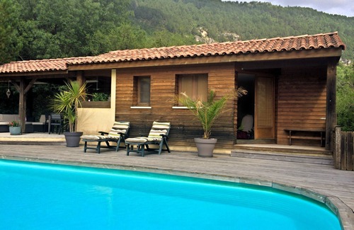 Nice, comfortable house for 2 people in a remarkable site in the middle of Cirque du Bout du Monde, with private pool, surrounded by a large garden on 2600 m2 of land with parking. The pool is surrounded by a wooden terrace at the edge of a loggia equipped for dining with kitchen, barbecue and outdoor lounge, where you'll enjoy peace and quiet sunbathing and listening to the song of cicadas.
