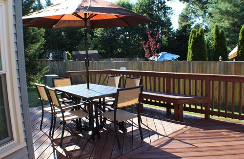 This 3000 sq. foot property has 5 large bedrooms, 3 full bathrooms, recreation room, living and family rooms, dining room, Kitchen, breakfast nook, large deck, and a quiet cul-de-sac corner single family home. Plenty of very comfortable sleeping for 12 guests on 1 king bed, 3 queen beds, one twin day bed with 1 twin trundle, and 1 queen futon in the recreation room.