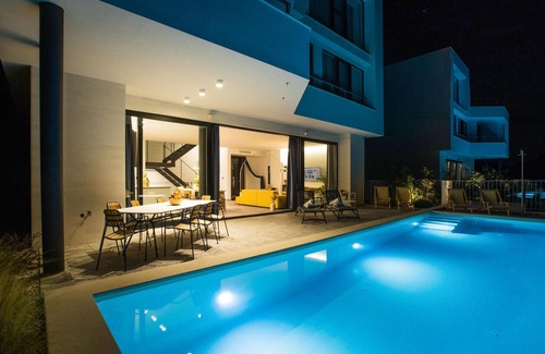 This modern vacation villa above the center of the town of Makarska will delight you with quality and comfort, equipment and sea view.