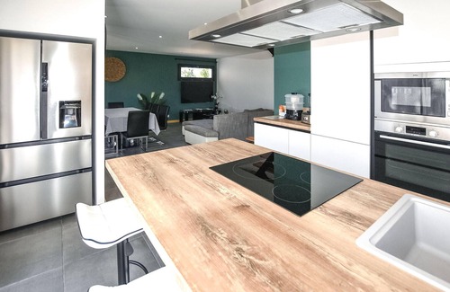 Feel at home here together with your extended family or a family of friends and spend a relaxing time in the bright and cozy rooms. On two floors you can spread out and discover the amenities of the accommodation. The furnishings have been designed with quality and comfort in mind, offering you great hours in the company of others in the large kitchen or the cozy living room.