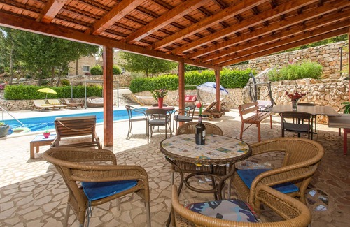 Once an old stone property, now in a new light, renovated in authentic Dalmatian style and adapted to all standards of modern life. It consists of three facilities in one, on the ground floor is the living room with an old Dalmatian tavern with fireplace, ideal for socializing, and upstairs is a large living room and bedrooms. Just a few steps away are two other buildings, one of which consists of two apartments, connected by an external staircase, and the other is designed as a bedroom with bathroom. There is also a large swimming pool surrounded by Mediterranean plants and a variety of entertainment content, with beautifully designed sun terrace and magnificent views of the landscape of the Dalmatian hinterland. Visit the city of Split and enjoy a tour of the historic Diocletian's Palace.