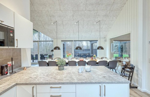 This modern holiday home awaits you in a small holiday home village near Trams am See and not far from Lake Trams. It offers a high-quality, bright interior and plenty of space and comfort for several families. The centrepiece of the house is the beautiful living area with an open-plan kitchen and space for cooking together. You can enjoy delicious meals together at the large dining table. Have fun in the activity room with a game of table tennis, table football or darts and refresh yourself with a cold drink at the bar. The beautiful pool with water slide invites young and old to enjoy hours of fun. Or enjoy a massage in the whirlpool and then relax in the private sauna.