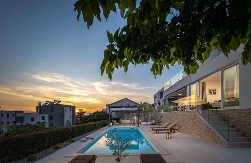 The magnificent and modern Villa Milagros is located in Dalmatia, in the town of Kožino, and is only 7 km from the tourist town of Zadar. Kožino is an excellent location for family holidays and pleasant gatherings with friends, thanks to the clean beaches and the clear Adriatic Sea. On the other hand, the city of Zadar exudes a pleasant climate, and is ready to offer you various types of entertainment and activities such as horseback riding, diving, theatre summer, and summer evenings complete with live musical events.