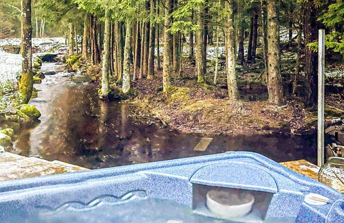 Two spacious wooden terraces offer a beautiful view of the peaceful garden. Prepare delicious meals on the gas barbecue and listen to the babbling of the romantic stream that adorns your idyllic natural property.