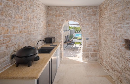 Nice home in Muntrilj with WiFi is located in Tinjan. Nice home in Muntrilj with WiFi provides accommodation, featuring Parking, Private Pool, Security/Safety, among other amenities. This House features Parking, Private Pool, Security/Safety, to make your stay a comfortable one.