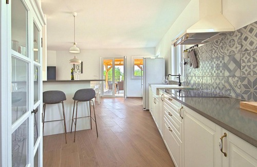 This beautiful villa has a lovely private pool, an outdoor jacuzzi and a sauna - everything you could want for a relaxing vacation! Relax on the sun loungers next to the pool or enjoy a meal from the barbecue in the dining area right next to the pool. Villa Vespera will delight you with its tastefully furnished interior. On the first floor there is an open space divided into a fully equipped kitchen with dining area and a spacious living room. On the first floor there is one of the four beautifully furnished bedrooms with en-suite bathrooms and the sauna. The remaining three bedrooms and bathrooms are located on the upper floor. All bedrooms are air-conditioned and have a TV. Enjoy your morning coffee with a light breeze and a beautiful view from the terrace on the upper floor of the villa. Book Villa Vespera and spend a fabulous vacation near Porec.Located in the quiet part of Porec, but only a short drive from the city center, this villa is ideal both for those who prefer a relaxing vacation and for those who like the hustle and bustle of tourist cities. In Porec you will find all kinds of activities, restaurants, bars and clubs. As Porec used to be a Roman colony, the city is especially known for its rich cultural heritage. The breathtaking Euphrasian Basilica, under UNESCO protection, is the best proof of how glorious the history of Porec was. Medieval towns of Motovun and Groznjan as well as the coastal towns of Rovinj and Versar are only a short drive away from the villa. If you are interested in more distant parts of Istria, the Brijuni Islands and the Roman amphitheater in Pula are easily accessible from this region.