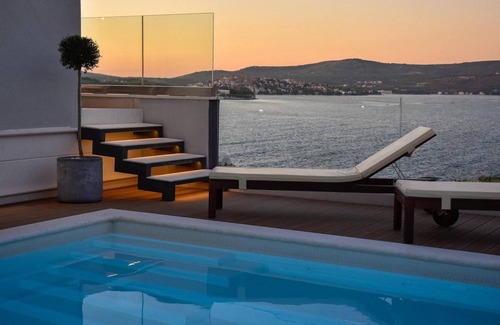 Let yourself be enchanted by the dreamlike villa, which impresses with a breathtaking view of the Adriatic Sea and the offshore islands.