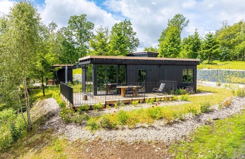 This detached lodge is located in holiday park Hillview Resort Grandvoir, which opened its doors in 2023. It enjoys a beautiful location in the green hills of the Belgian Ardennes, 2 km from the village of Grandvoir, part of the municipality of Neufchâteau (7 km). The lodge is located on the ground floor and is furnished in a comfortable and pleasant way. The nice living room features large windows. This result not only in a lot of light, but also offers a nice view from the sofa. There also is a TV with streaming function. It allows you to watch your favorite apps on your phone or tablet on the TV using your own accounts. The open-plan kitchen is equipped with an oven, microwave and dishwasher. There are two bedrooms, each with an en-suite bathroom with two single box-spring beds set up as a double bed and a rain shower. In one of the bathrooms, there is a lovely infrared sauna. Here you can relax and enjoy your well-deserved holiday. There's a separate toilet. The outdoor life takes place on the (covered) terrace with garden furniture, which can be reached through a sliding door from the living room. From here, you can enjoy a beautiful view of the natural surroundings. There also is a fire bowl that can be used for a barbecue. There is parking for one car near the lodge. At holiday park Hillview Resort Grandvoir, various lodges and hotel rooms can be booked for two to six people. Pets need to be mentioned during the booking process due to limited availability.