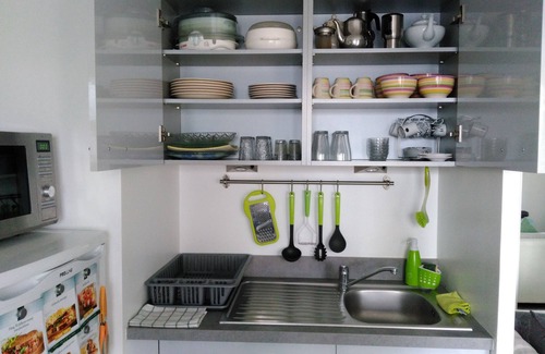 4 - A fully equipped American kitchen: Dishes + Fridge + Oven + Ceramic hob + Microwave + Kettle + Coffee machine + Teapot