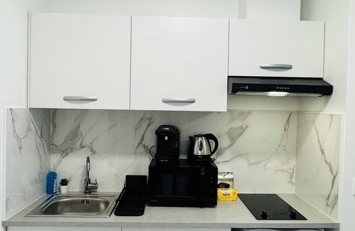 The kitchen is equipped with a refrigerator, as well as a microwave, cookware, and a coffee grinder. Bathroom amenities include a hair dryer, towels, and toilet paper. And you can even travel light because you'll have access to laundry facilities. Other amenities at this 1-bedroom, 1-bathroom rental include bed sheets, heating, and a dining table.