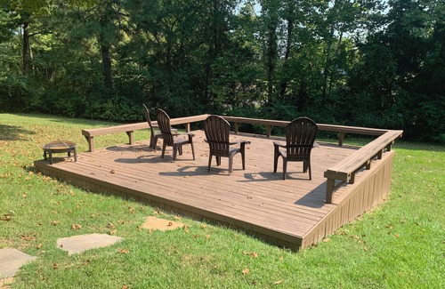 Pet Friendly with dog bed and cage available, only one pet is allowed at a time . 2 Large Bedrooms with one having a Work Desk. Large Bathroom with walk in Shower, Shampoo, Lotion and Hair Dryer. Laundry Room with Iron and Ironing Board. Coffee and Tea bar with coffee,sugar and creamer. Kitchen is ready for all your cooking needs. Cozy living room with plenty of blankets. Home on approximately 1 acre with lots of trees. Covered side patio, Large backyard deck with fire pit. Plenty of space indoors and outdoors for a very enjoyable stay.