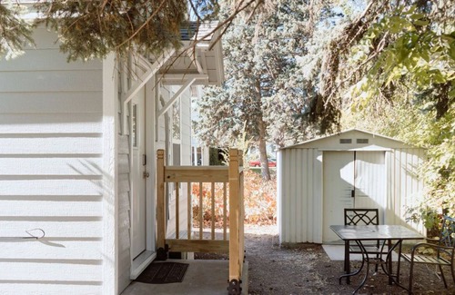 You'll feel right at home in this "Simply Suite" and peaceful private home. This freshly remodeled cottage has all the modern amenities, including a smart lock for self check-in and a Roku TV set up so you can log into your favorite streaming apps. A queen-sized bed and comfy chair adds to its homey feel. and the fully equipped kitchen provides everything you need for a dine-in meal or a quick breakfast. Outside amenities include off-street parking and a cozy little dining area among the trees.