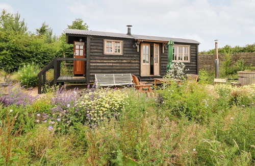 Luxury 5 star Ashwood Shepherds Huts as commissioned by The National Trust & The Aspinall Foundation. The shepherd's hut's living areas consist of a studio-style layout with a kitchen offering an oven, gas hob, fridge, a dining area with seating for two, and a sitting area offering a TV. The space features a king-size bed and opens out to a wet room. Outside, a private garden with a fire pit, oak barrel hot tub and furniture, a communal area wooden shelter, fire pit, woodburning stove and a swimmable lake, as well as private parking. Within 3.8 miles, you'll discover a shop, and within 1.8, a pub. This property prohibits smoking. One well-behaved pet is welcome here. Fuel, power, bed linen and towels are all included in the rent. Choose Nomad (shepherds hut) for a marvellous stay in this lovely part of Leicestershire. Note: There are steps up to the entrance, please take care. Note: This property does not contain wi-fi as it is intended as a digital detox retreat.