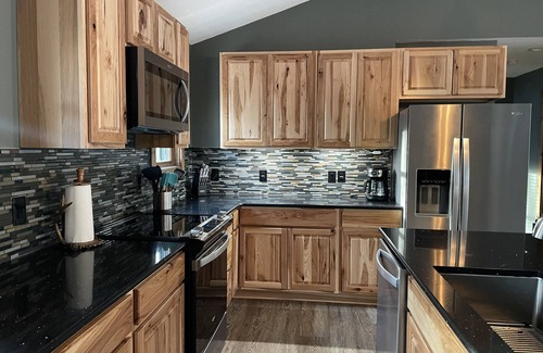 Enjoy the tranquility of the woods at this cozy 3-bedroom, 2-bath Lakes of the North cabin. Relax in the private outdoor hot tub year-round or stay cool with central air. Minutes from golf, biking, hiking trails, and downtown Gaylord’s Alpine Village. Perfect for BBQs on the deck, stargazing by the fire pit, or spotting the Northern Lights.