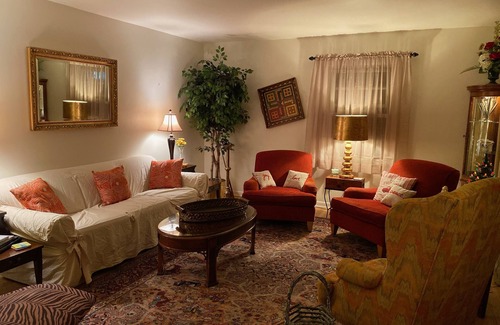 Stylishly decorated and perfectly maintained 1950s ranch with everything you need to feel at home. NEW: NO CLEANING FEES. Three bedrooms, 4 luxurious beds, (king queen and 2 twins) , queen sofa sleeper just added for 2 extra guests (even the unexpected),1.5 bathrooms, well appointed cooks kitchen with modern appliances and retro decor. You’ll feel like your visiting your very cool grandparents’ house. Lots to look at and talk about as you explore the decor of the 50s, 60s and 70s. Wedding Guest?? We are walking distance from Veterans Terrace and The Mercantile. The 1841 Barn is 2 miles away.