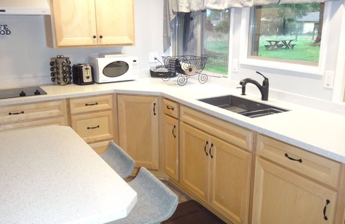 This early-1900s carriage house has been completely remodeled to provide a lovely long-term living area. It was designed with You in mind! A covered parking space right at your front door. Bicycles to enjoy the surrounding parks and forest. Natural & non-toxic products everywhere possible. Remote controlled heater so you don't even have to get up to change the heater setting, but it is always on a timer to make sure you are cozy the moment you awake and when you come back at the end of the day. Your comfort is important here!