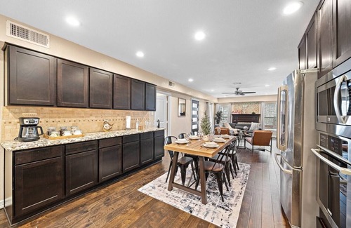 "Great house!! Had an extra room off one of the queen bed rooms that we didn’t expect. This made some extra space for the kids. We were there for the Houston livestock show, it was close & easy to get to. The driveway was long enough for 2 cars to fit & probably a 3rd had we had it. We arrived at 2:30am and had an issue with the code working. When we emailed about it, we got an immediate response and they opened the house remotely. We didn’t have any other issues with the door. It was very nice & worth the $. We will stay there again next time!" - Sarah