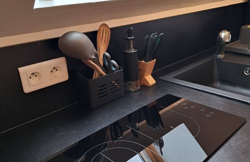 A unique room with a kitchenette equipped with oven, microwave, coffee maker, kettle, toaster, small electric oven, wifi throughout the free accommodation.