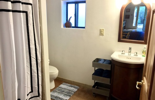 Lovely 1 bd / 1 ba (1,100 sq ft) "casita" (guesthouse) nestled on an acre in the beautiful North Valley. Enjoy large, lush yard shaded by cottonwoods in the Rio Grande's bosque. Walking distance to cafe, bookstore and more (~1/2 mi). Short drive to Old Town, Downtown, UNM, and Balloon Fiesta Park. Adjacent to the bosque trails that lace the North Valley (walking access to the nature center, miles of trails, & area wildlife). Beautiful yard and pool are shared. Lots of parking. Dogs / Pets negotiable.