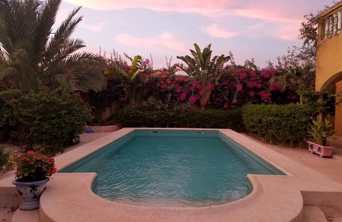 This deumeure is equipped with a supressing well with solar pump (goodbye the water cuts) and the whole house is solar powered (no worries about power cuts either). It has 3 bedrooms, 1 air-conditioned but all 3 ventilated. There are 3 large double beds and 1 extra single bed in the middle bedroom. This house has a breathtaking view of the ocean from the terrace. It has a well equipped kitchen (open concept with dining room). All beds have mosquito nets. There is a water heater for the 2. 5 showers it has when needed. A giant fridge and a 43cm flat TV. A huge pool in a well blooming garden. A Guardian in his local separate 24/24 and a housekeeper for the household and could make succulent meals when needed for a little extra money! Let yourself be rocked by the waves of where you are in the house! Welcome!!!