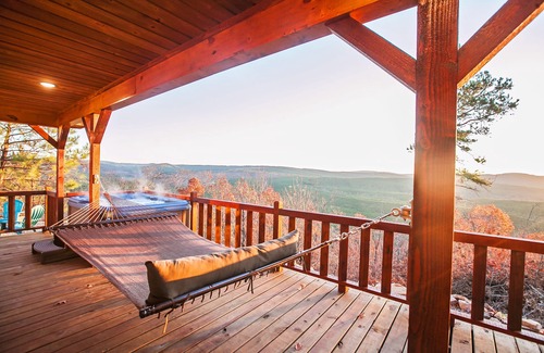 All cabins are equipped with sliding patio doors that face East to offer an amazing one of a kind view of the Boktuklo Mountains and the most spectacular sunrises you will ever experience. The sliding doors open onto a large deck equipped with hot tub, hammock for two and patio dining and gas grill. The view from the patio will be well worth the trip. When you gaze from the patio there is a quiet and beauty in the air that you can only experience in places of nature well away from noise and activity of the city. You will experience a peace and calmness that only comes in the solitude of nature. Please bring your cameras, the photo opportunities are once in a lifetime.