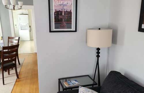 Sits on Observation Hill. Features 4 separate beds, 3 separate sleeping areas, vintage/victorian bathroom, artwork by local artists, and in-unit laundry. Less than 1 mile from Canal Park, Bayfront, AMSOIL Arena, and the DECC. 6 blocks or less to Downtown, Traverse Trail, Lake Superior Hiking Trail, and Enger Tower. Less than 2 miles to the Craft District. Enjoy some views of the lake, lift bridge, and bay. Great for a short trip or an extended stay. This is an upstairs apartment with a couple sets of stairs to get into the apartment.