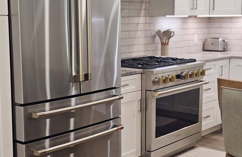There are two bedrooms each with a queen sized bed. One bedroom has a private bath. The other bedroom shares a bathroom with the rest of the house. The kitchen has a propane stove, oven, large refrigerator with ice maker, garbage disposal, toaster, Keurig and standard drip coffee maker, dishwasher, and a microwave. It is well-appointed with pots and pans, blender, and kitchen utensils. A full-size washer and dryer are located within the mudroom.