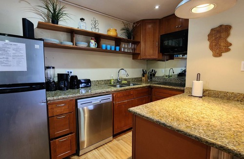 ● Fully equipped kitchen with breakfast place and granite counter-tops, plus Dishwasher, Over-the-Range Microwave, Cooktop, and Fridge