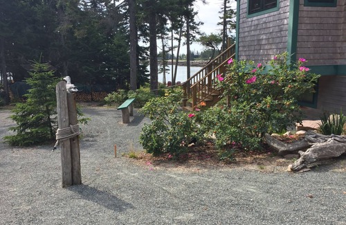 Here you can enjoy the privacy of 225 feet of rock bound waters. An easy path to the shore rocks for sitting in your red chairs to enjoy the waves, wildlife, cruise ships, lobster boats, and a view of the Petit Manan Light. We have a thunder hole when the waves get rolling and a tidal pool to cool your feet. A chimenea and wood near the shore for your outdoor adventures. Lots of low bush blueberries for breakfast when in season.