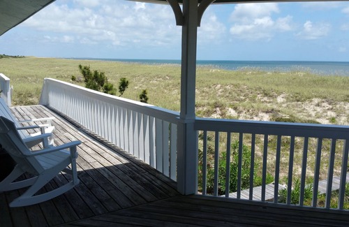 Guests are amazed by the privacy and beauty of our ocean front property. A 500 foot driveway leads to East Wind. Once there one will be surrounded by the natural beauty of Bald Head. East Beach to the front, Cape Creek to the back and a 40 acre private nature preserve to enjoy exclusively. Guests see expansive natural views like one would see visiting a ranch out west, except it's at the Beach!