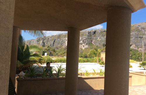Quite neighborhood,sound of ocean waves and beautiful view of the bluff!!!Family friendly.With restful hammock,barbecue grill and a swimming pool.You must have a car to visit and explore the caves around the area.
