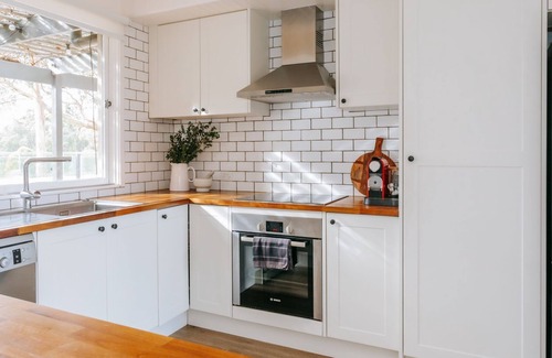 This renovated four-bedroom holiday home, set on five acres in wine country, sleeps up to 10 guests. Enjoy stunning views of Western Port Bay, a solar-heated pool, and outdoor games like badminton, volleyball, and basketball. The fully equipped kitchen includes a dishwasher, microwave, and Nespresso coffee machine.