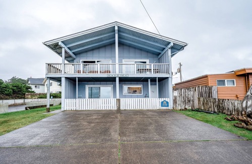 Leave your worries behind and bask in the ocean views at this Newport getaway. Perfect for travelers looking to avoid stairs, this easy-access, lower-level duplex is part of a larger home. Set right across the street from a staircase leading to the beautiful shores of the Oregon Coast, you and your guests will be able to delve into a bevy of local attractions without the hassle. Two miles from the Oregon Coast Aquarium and a short walk to the charming Nye Beach neighborhood of Newport, you'll have it all at your fingertips. Grab your clubs and make the quick three-mile drive north to the pristine greens of Agate Beach Golf Course.