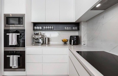Our kitchen has everything you need. Fitted out with; coffee machine, induction cooktop, oven, cooking utensils, kettle, full fridge/freezer, toaster & microwave. All tea/coffee condiments (including ground coffee) are provided.