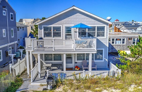 We just bought this house in the Spring of 2021. This is ocean front with its own private beach access. This is one half of a duplex and excellently maintained. You get the benefit of quiet ocean front property and a two block walk to the Long Beach Boulevard which has tons of restaurants, ice cream, a Wawa and even a bank right there. You can even take a bike ride or longer walk to Fantasy Island.