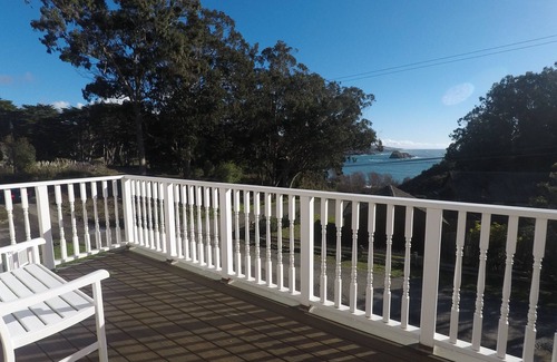 Gaze over the crystal blue ocean of the Mendocino coastline accented by sparkling "diamonds on the water," right from the porch of our fully remodeled, historic, two-story, Victorian-style home.
