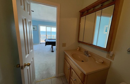 There is nothing like being right on the ocean with spectacular views from inside or outside of sunrises, sunsets, and the ocean waves! Sit on the deck or the Adirondack Chairs and you are just 10 feet from the waves! This is the best piece of coastline around, with the view of the Newport Bridge to the left, and the Point Judith Lighthouse to the right. Enjoy the view whether inside the house or outside on the large deck. Half mile walk or drive to Scarborough State Beach, 10 min. to Block Island Ferry.Windows and sliders upstairs and down provide a front row seat to watch the waves come in, surfers in the backyard, boats, seagulls, ducks and an occasional seal. Enjoy High Speed Internet so that you can work from home. Beautiful 4 bedroom (2 Q, 2 Full), 3 Full baths plus outdoor shower, spacious house directly on the ocean in Narragansett (Point Judith), Rhode Island. Spectacular Water View from almost every room, watch the sunrise over the ocean, the pink sky at sunset, and the moon glistening on the water!
