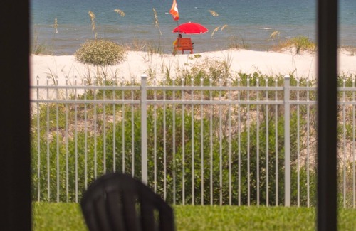 The Happy Pineapple condo has 2 bedrooms, 2 bathrooms and is located on the ground floor of a friendly mid-rise beachfront community. Don't mess with narrow staircases or slow elevators when you can walk right out of your living room! The bedrooms each have new beds, with a king in the master and a queen in the guest bedroom. The condo sleeps 4 comfortably, but can accommodate up to one additional guest on the couch in the living room or an air mattress (provided by request).