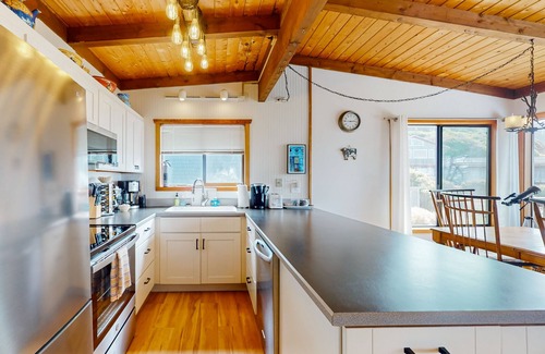 When everyone has had their fill of coastal sightseeing, relaxing at home base on your private deck will be the perfect cap to dreamy vacation days. Sip a cocktail or glass of wine as burgers cook on the gas grill, or soak in bliss in your private hot tub! When everyone is ready to come inside, the wood stove will keep everyone cozy on foggy mornings and chilly evenings as a movie streams on the TV. Bring along your favorite recipes as well, as the remodeled kitchen is more than ready to assist with preparing meals right at home.