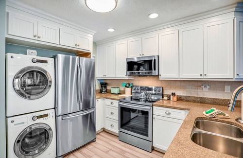 After a beautiful day spent boogie boarding and beachcombing, take the elevator upstairs, toss your beach towels in the washer/dryer, and have a seat outside on the balcony. It's a gorgeous spot for cold drinks, afternoon card games, and savoring the sounds of the crashing ocean waves.
