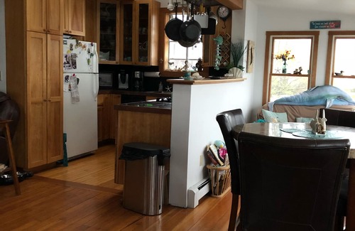 Enjoy true relaxation and serenity in this wonderful place that refreshes your soul. The open well stocked kitchen and cozy living room provide ocean views from every angle. Cook on the gas stove as you watch the seabirds dive for clams, even from the bedroom. A new wrap around deck and dock has been added this year. The loft has two twin beds and a queen which also has ocean views and skylights. The large yard with comfy hammock, lounge chairs, and gas grill provides ample room for yard games along with direct water access for swimming, kayaking, fishing, and exploring. There are quaint towns to explore within minutes of driving along with prestine beaches with good waves to ride. A pet friendly beach is within walking distance, along with great restaurants, ice cream parlor, Flos Clam Shack, and parks. There are antique stores, spas, high end consignment shops, mansions, festivals, polo matches, wineries, and the gorgeous cliff walk in Newport for scenic exercise. This is a great find for vacation!
