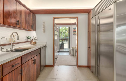 Puunoa 103 marries modern design elements with fine Koa wood finishes that reflect an authentic Lahaina Beach house experience. A generous 1,700 square feet condo is luxuriously appointed featuring King size beds that beckon lounging with good books and afternoon naps in the master and guest bedrooms. The third bedroom offers a bunk bed for the kids. Every bedroom includes high-end linens, a flat-screen TV, and all the style you could hope for in this chic condo. Also included for added convenience is a washer and dryer. Each of the two bathrooms comes with large walk-in showers, including an oversized soaking tub in the master bedroom (Bubbles anyone?). Speaking of bubbles, unit 103 dawns a gorgeous fully stocked gourmet kitchen for entertaining friends or preparing meals with family. Celebrate life, love, and beauty with loved ones at Puunoa Beach Estates for a Maui experience second to none. Dine al fresco on the expansive lanai or take your meal inside where the cool blue and Hawaiian-inspired finishes will keep you feeling at ease. A central a/c provides cool air to all rooms!