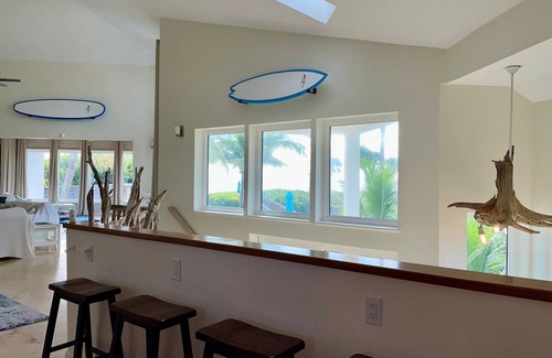 Available Labor Day weekend! Plus, it’s turtle season through end of October. It’s magical to chance upon a momma turtle or her baby hatchlings on beach right behind our house. Direct beach access. Most private ocean front property in Cocoa Beach. Enjoy AMAZING VIEWS, sunrises and sunsets. Beautifully remodeled 4000+ sq ft 4 bedroom 3 bath home, on 1/2 acre, features 2 master suites, 2 separate living spaces (ideal for 2 families) and chef's kitchen. Separate downstairs area with mini bar and recreation room offers private retreat. Enjoy your favorite drinks on the beach, by the pool, on 1 of 3 decks, or in a hammock under the tree canopy. Relax. Let the rolling waves wash away all your stress. Your dream vacation awaits. Reserve your dates today!
