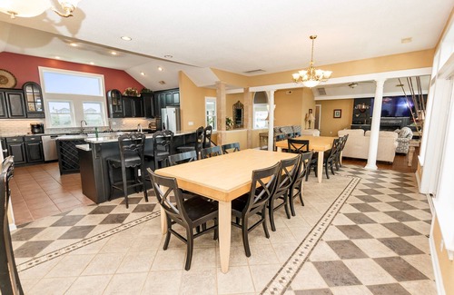 Mid Level: 2 King Master Bedrooms each with flat-screen TV, private bathroom (1-with whirlpool tub) and pool deck access. Queen Master Bedroom with flat-screen TV and private bathroom, Master Bedroom with 2 Bunk Sets, flat-screen TV and private bathroom, and a Master Bedroom with 2 Singles, flat-screen TV and a private bathroom. Laundry room with utility sink, full-size refrigerator, deck access and washer /dryer.