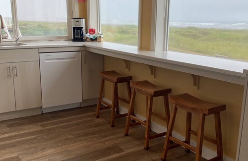 Our large open floor plan is perfect for family vacations and has proven to be an exceptional retreat for families, quilters, scrapbookers, book clubs and more. Our private sleeping areas pamper you with quality linens and comfortable beds. Our goal is to make you feel so 'at home' you won't want to go home. Curl up by the fire, host a holiday dinner in our well-equipped kitchen (recently remodeled, complete with beautiful quartz countertops and a large dining table seating 10), do a puzzle or use your laptop at our game table, or watch movies on one of our 4 TV's---our home is perfectly suited for almost any occasion with the bonus of a breath-taking oceanfront view. All flooring updated with plush carpeting and luxury vinyl plank flooring.