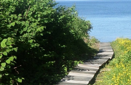 Private Water access is from behind the house through the backyard to the a small sandy and rocky beach of Clam Cove where one can collect lots sea glass and sea treasures.