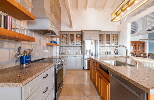 -Perfect Gateway for families and friends, the entire Villa is fully Air Conditioned, even the Kitchen so you can relax & enjoy all the amenities, Xtra Large Ocean front Pool, Large Covered Terraces to enjoy the perfect Sunsets, Large Gazebo on the Ocean.