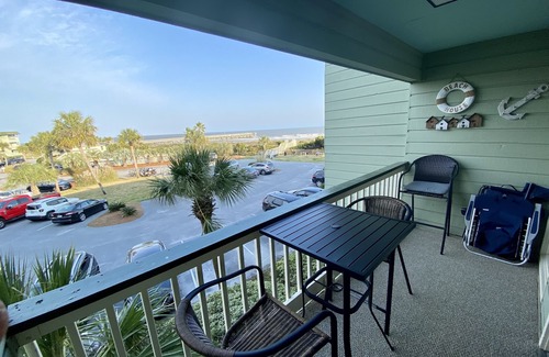 Check out our beautiful 1 bedroom oceanfront condo just steps from the beach. Private balcony has amazing ocean sunrise views! Sleeps 4 comfortably. Fully equipped kitchen with everything you will need. Large 65" Flat Screen in living room and New LG flat screen in bedroom. Free Youtube TV, Netflix, Prime, HBO, Max and FS Sports included along with WIFI and DVD! Lots of board games and books for family fun!